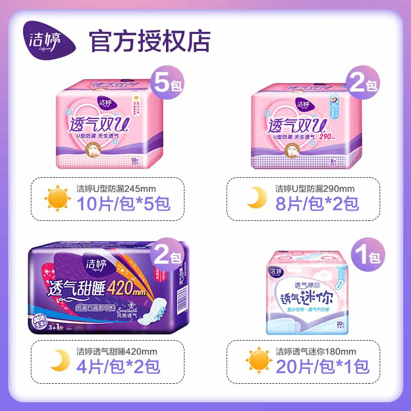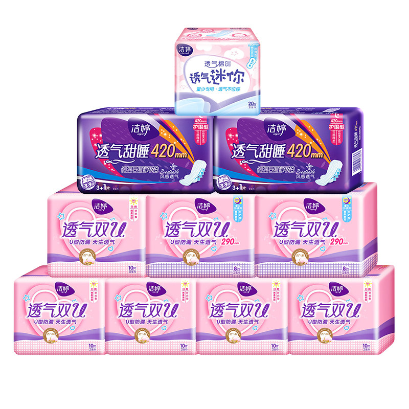Jieting sanitary napkin women's ultra-thin breathable double U day and night combination full box discount package aunt towel flagship store