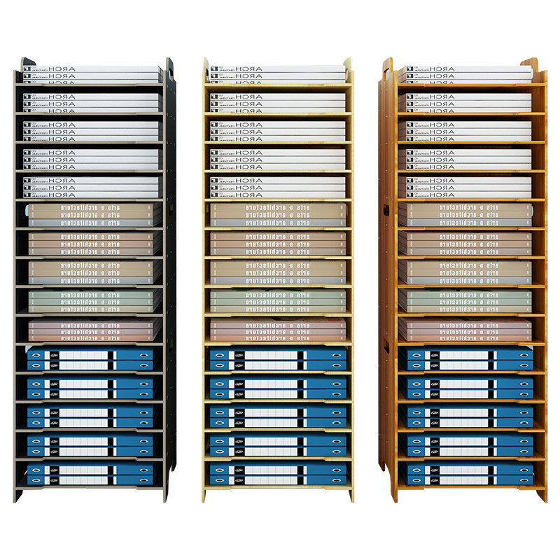 Simple bookshelf on the table A4 multi-layer folder storage box Wooden office supplies Organize data can be stacked cabinet File bag classification Floor shelf classification Dormitory student books