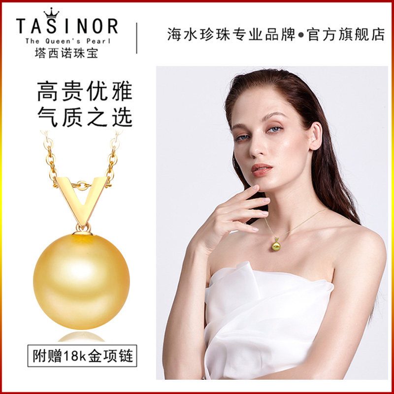 TASINOR Jewelry Nanyang Seawater Gold Pearl Pendant Gold Bead Necklace 18k Gold Gift for Wife and Mother