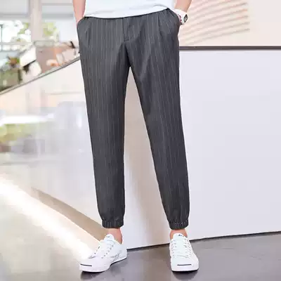 Taiping Bird Men's Ole Gray Vertical Striped Casual Pants 2020 Summer and Autumn New Slim Corset Pants ankle-length pants