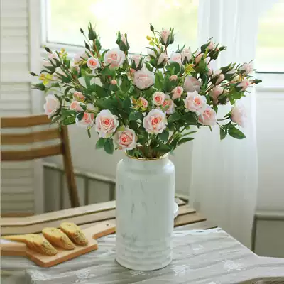 Rose simulation flower fake flower real decoration flower silk flower living room bouquet floral decoration table flower arrangement