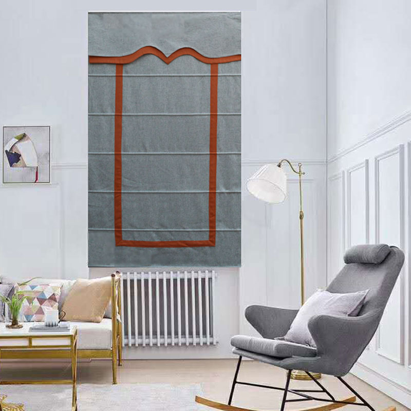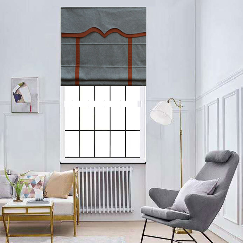 Curtains Nordic minimalist living room study shading heat insulation small lifting fan-shaped Roman blinds light luxury without punching