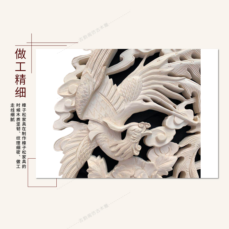 Dongyang wood carving entrance dragon and phoenix plate wall hanging solid wood background wall decoration Phoenix round plate pendant