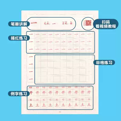 Groove copybook First grade lower book Commonly used stroke radical Groove Copybook First grade upper book Commonly used stroke radical red copybook First grade upper and lower book Red copybook one year