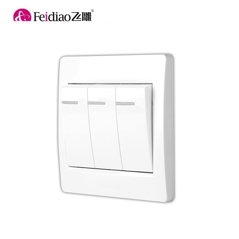 Fly Sculpture 86 Type Concealed Triple Open Double Cut Switch Home Three 3 open Triple Panel Wall Power Supply White