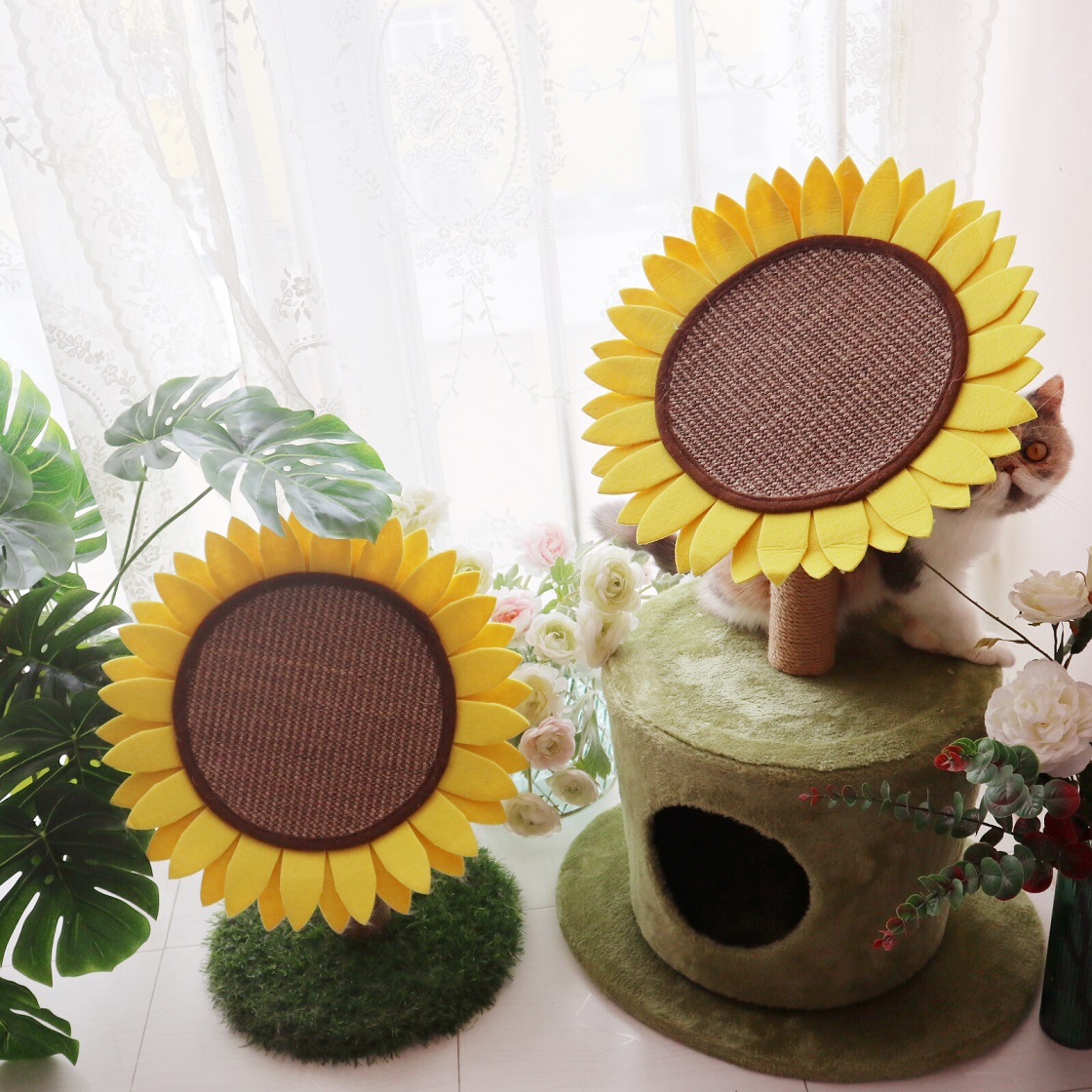 Round Cat Grab Board Sisal Sunflower Grinding Claw Toy Furnishing Pint Green BALL KITTY KITTY SMALL CAT CLIMBING RACK FLOWERS