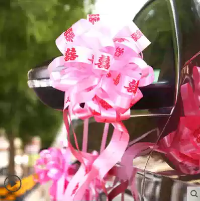 Wedding flower knot wedding wedding car decoration door rearview mirror large flower wedding supplies Red pink wedding belt rope