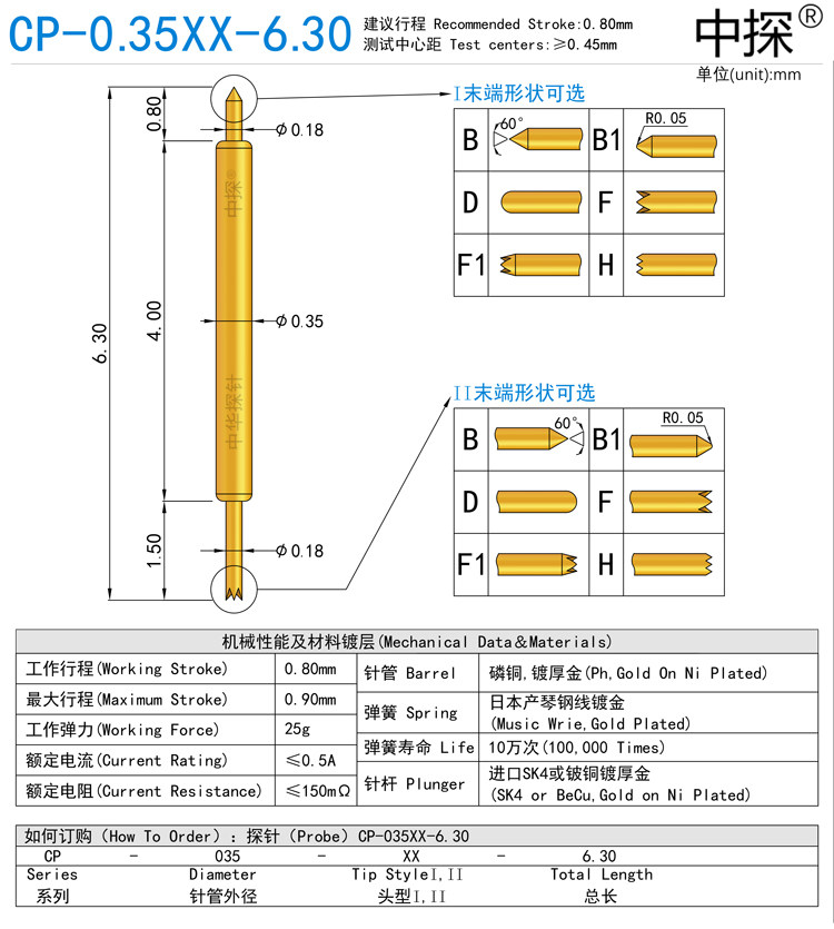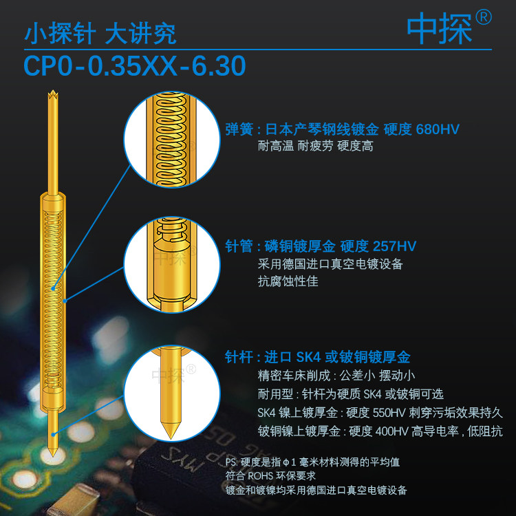 Medium probe BGA high frequency double head probe CP-0 35XX-6 30 pin rod adopts hard SK4 thick gold plated gold