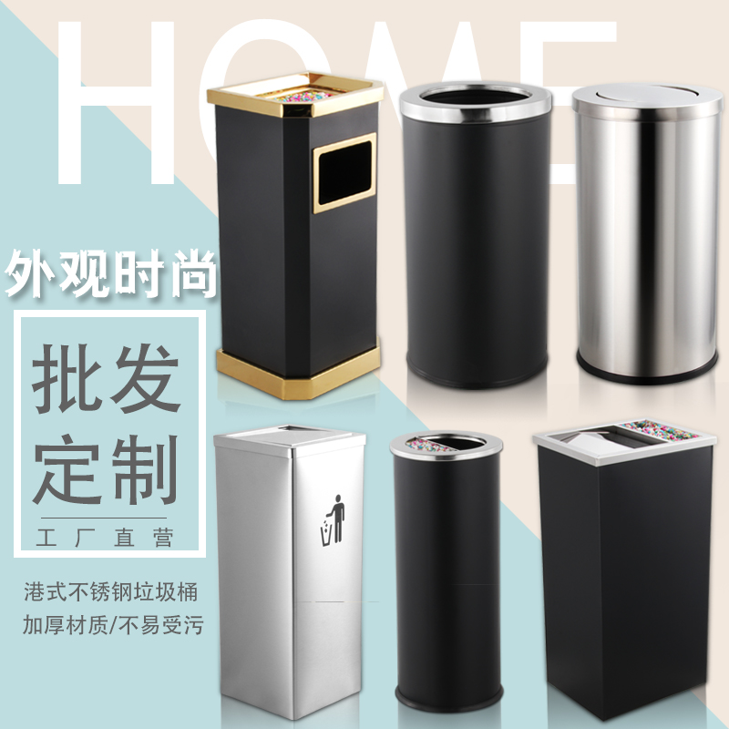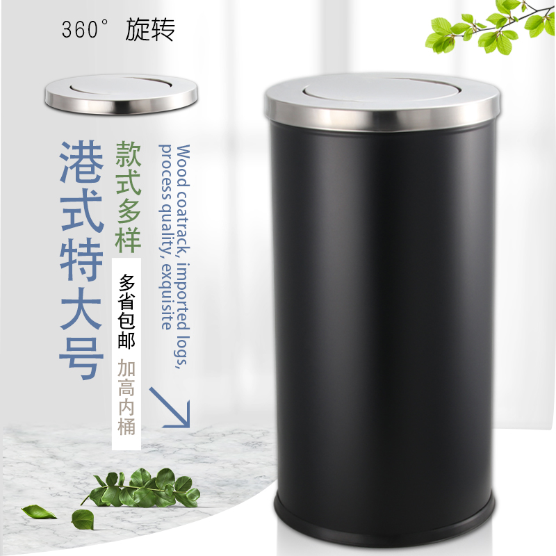 Port-Style Creative Stainless Steel Lobby Large Trash Cans Mall hotel Peel Rocking Cover Flip Outdoor Bins-Taobao