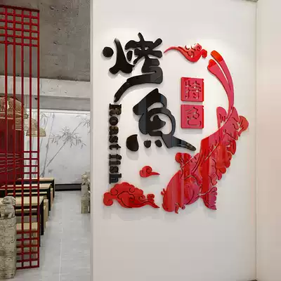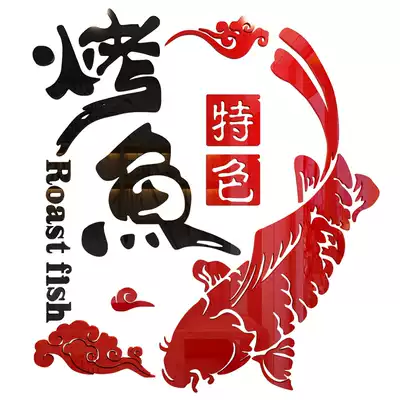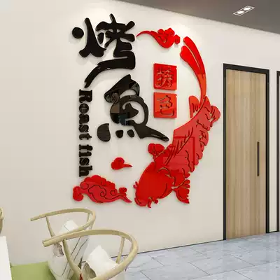 Grilled fish shop special shop wall decoration personality creative wallpaper stickers Grilled fish dining room hotel glass door stickers