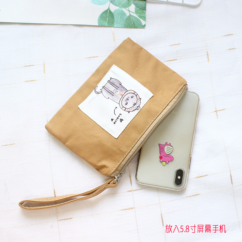 Small fresh wallet Student Korean version cute clutch ins long version zipper Canvas small wallet coin purse Simple
