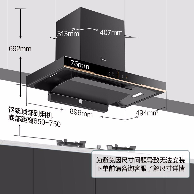Midea T59P top suction range hood Oil suction machine European smoking machine Kitchen automatic cleaning smart appliances
