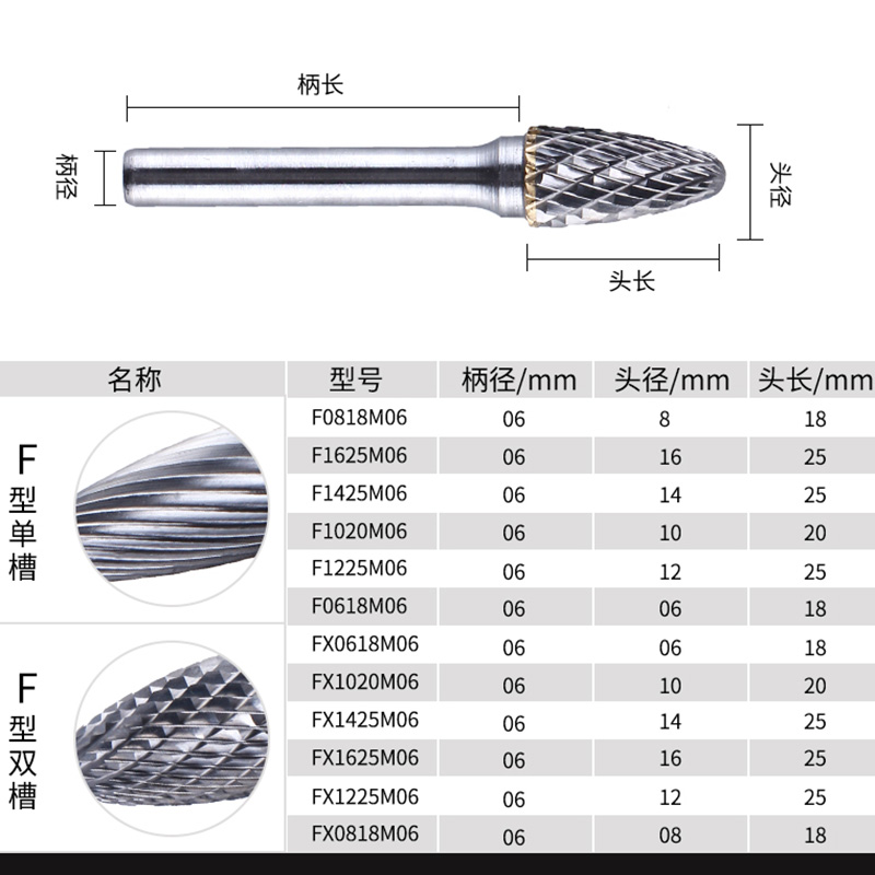 High hardness cemented carbide tungsten steel electric rotary file grinding steel sharp tool Metal engraving grinding head Type F