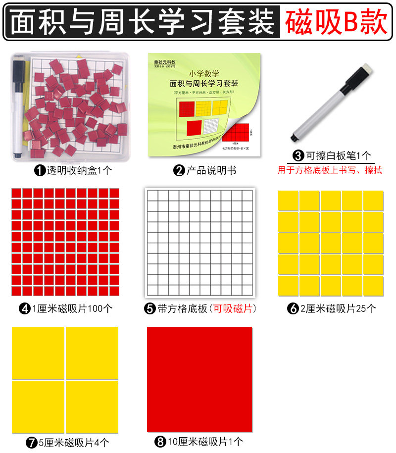 Magnetic attraction] area and circumference study suit A section of magnetic attraction] area and circumference study suit B magnetic attraction] area with perimeter learning suit C Magnetic Attraction] 1 cm Square Red 1