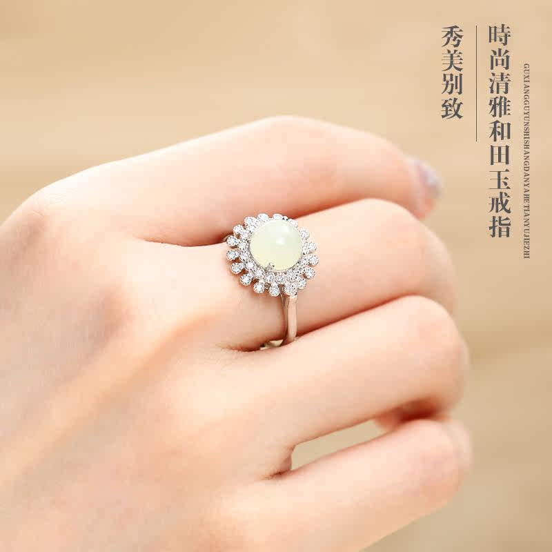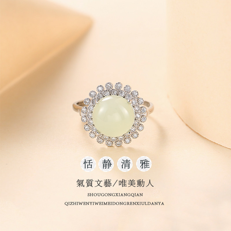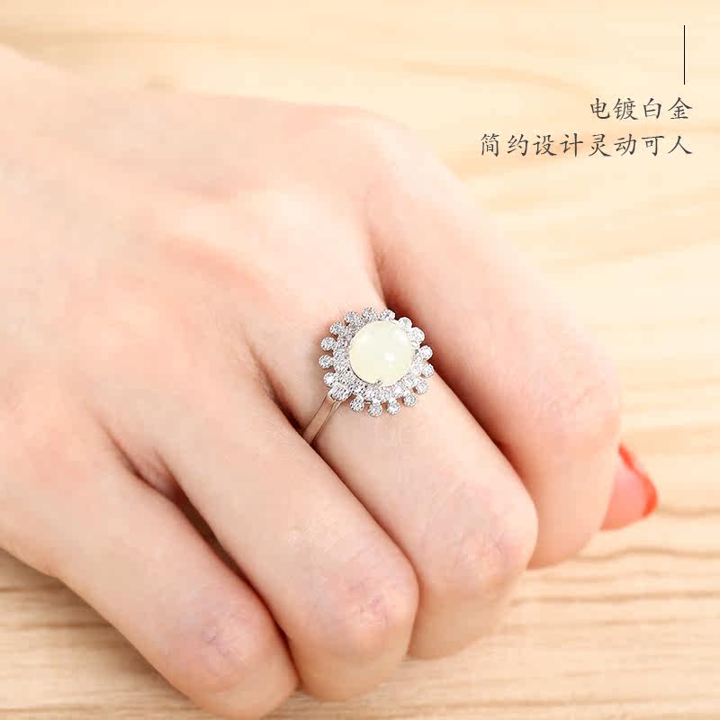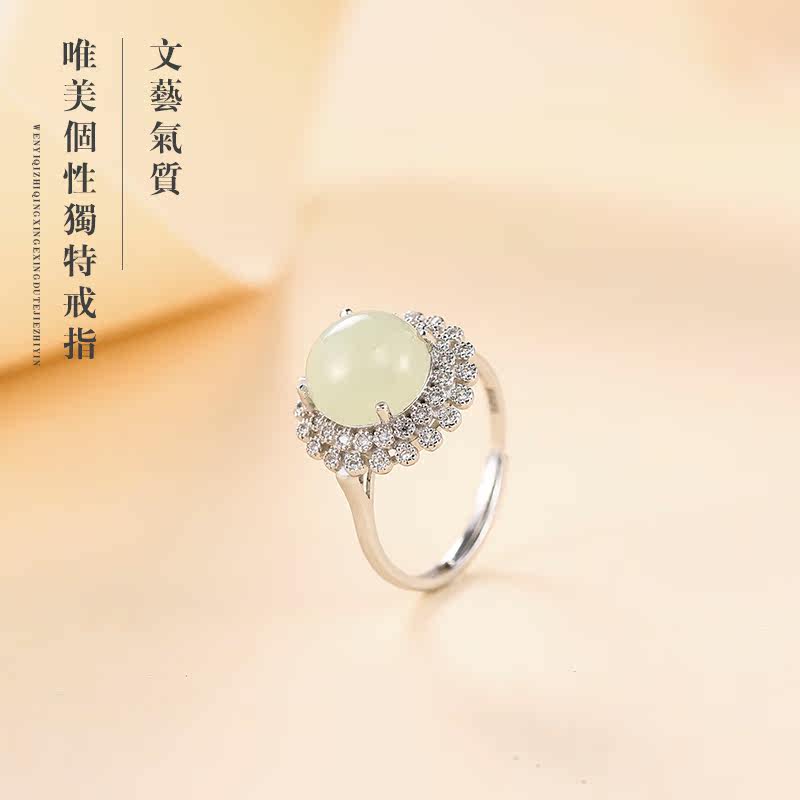 And Tian Jade Ring Female Pure Silver Fashion Personality Net Red Lukewarm Wind Food Ring Silver Ring Birthday Send Girlfriend Gift