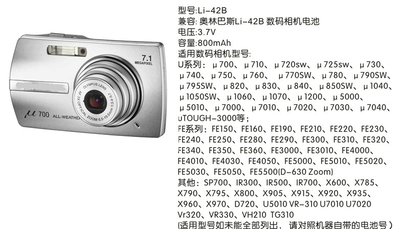 LI42B LI42B 40B applicable Olympus FE280 U1040 FE360 FE360 FE360 camera battery charger suit