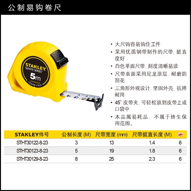 Stanley White Series Metric Easy Hook Tape STHT30122 30123 30129-8-23