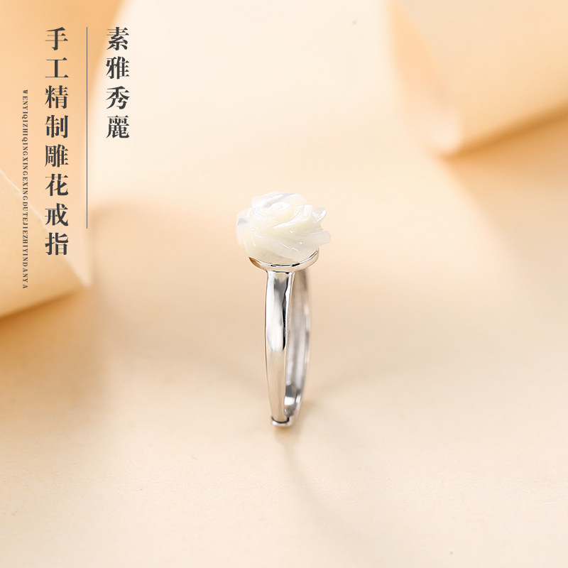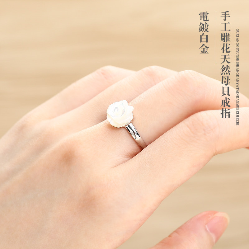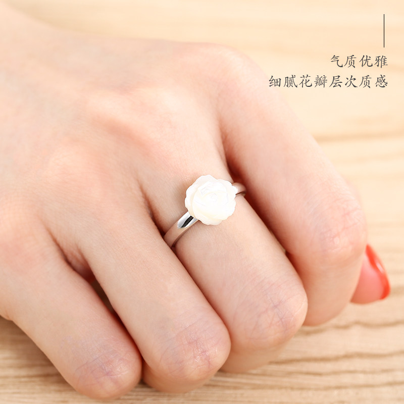 S925 pure silver rose ring female Korean version fashion pearl mother bay silver ring elegant flowers single ring forefinger ring