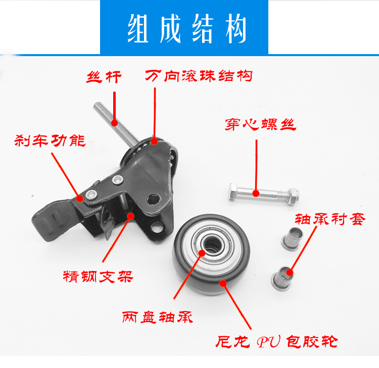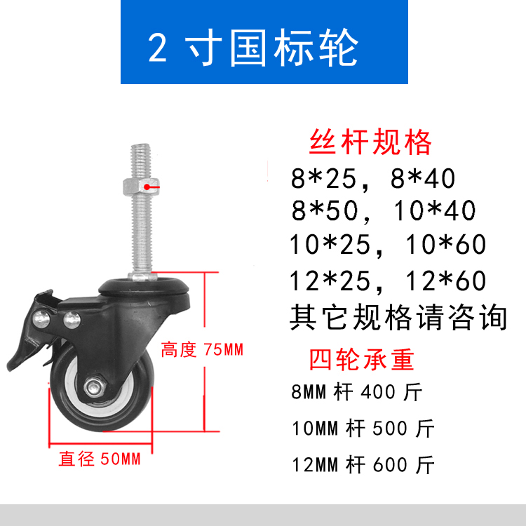 2 inch screw wheel Bearing shelf wheel Rubber coated silent universal wheel Extended screw gold drill wheel M8M10M12 wheel