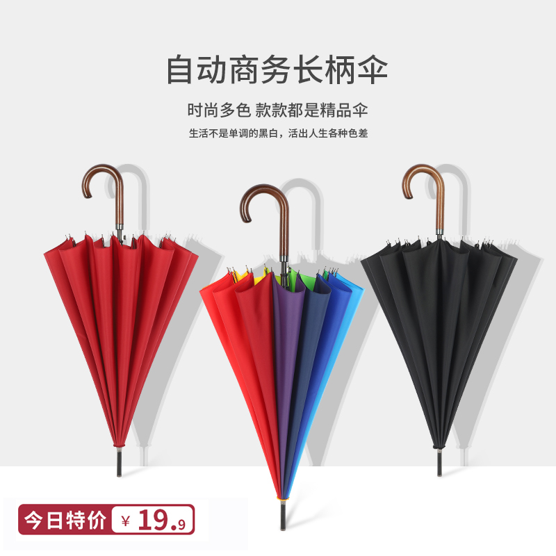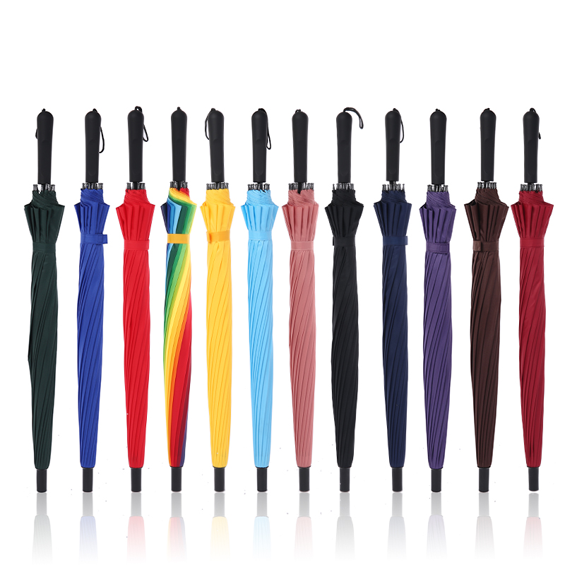 16 bone long handle umbrella Reinforced automatic umbrella Anti-wind umbrella Men and women straight pole business umbrella Rainbow umbrella Double custom umbrella