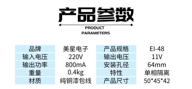 EI48 power transformer 11V 800mA DB-10VA 220V turns 11V electronic scale charger transformed