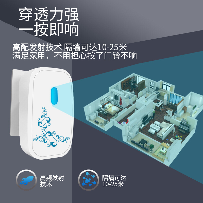 Wireless doorbell waterproof home smart door opener office electronic wireless doorbell one drag one caller