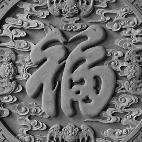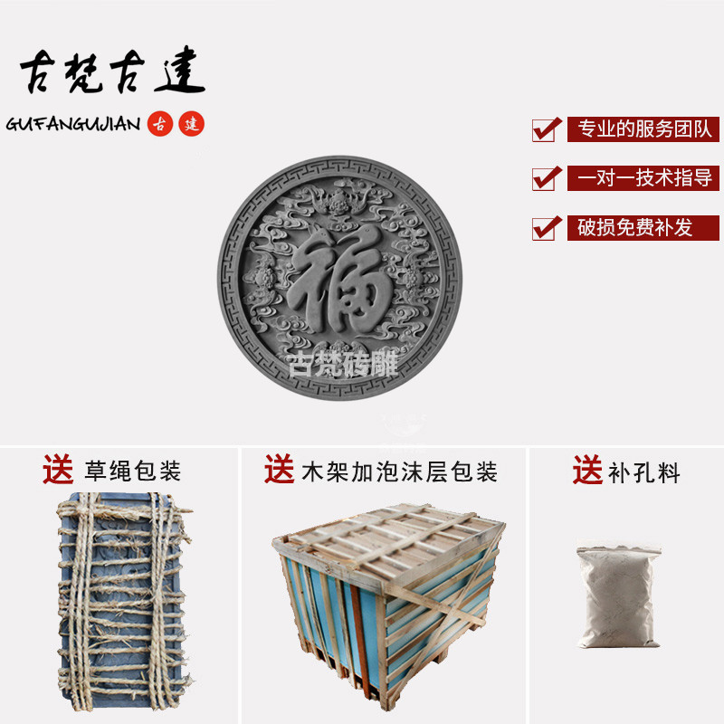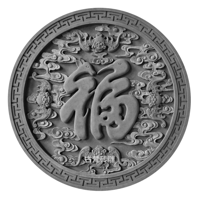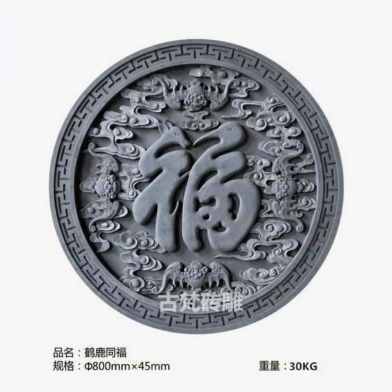 Ancient Van brick carved crane deer with Fu Chinese round shadow wall of ancient quartet brick carved courtyard wall