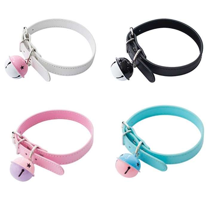 White purple silver card with color blue dark blue black pink green chocolate rose red orange red fluorescent green dark brown yellow pink bells simplified neck chain white traction chain (collar photo)