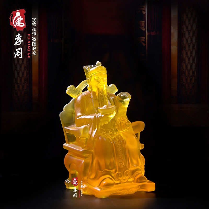 New boutique imitation glass Wen Cai God carry-on small Buddha statue ornament Feng Shui Zhao Cai home offering car gifts