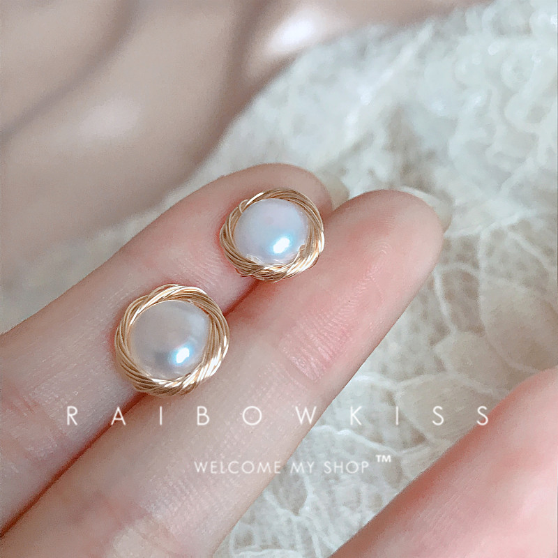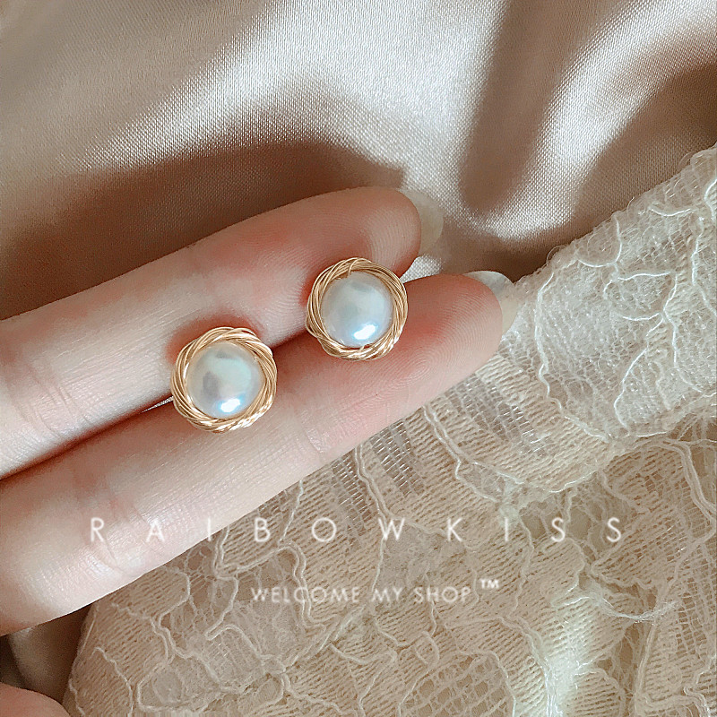 Baroque natural pearl ear nail 925 silver needle intense light winding 14k bag gold bird nest retro palace earrings female decoration