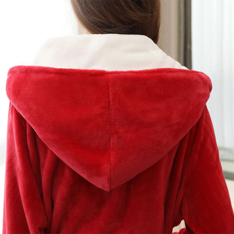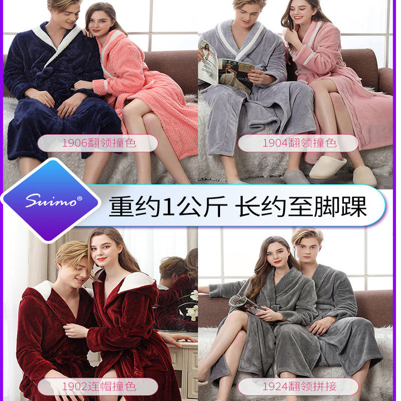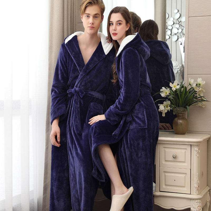 Winter flange suede lovers sleeping robes men even hat bathrobe thickened pyjamas women's large size Flannel Velvet Lovers Bathrobe