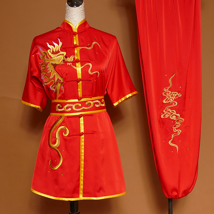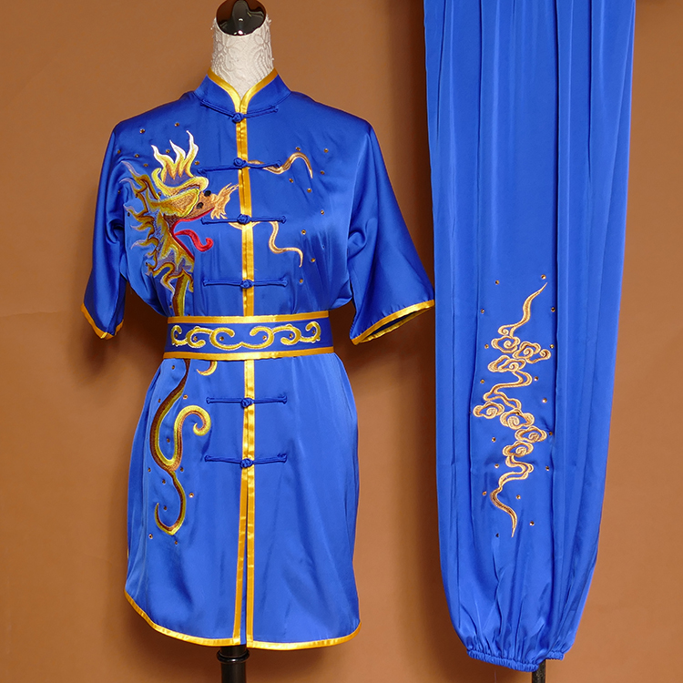 Black and white gradient dragon embroidery long boxing martial arts clothing for men and women routine practice kung fu clothing competition performance color clothing short sleeves