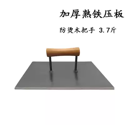 Wrought iron thickened squid special pressure plate Teppanyaki press shovel square type press with anti-hot wooden handlebars can be customized for commercial use