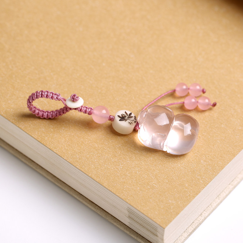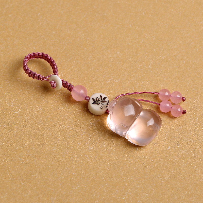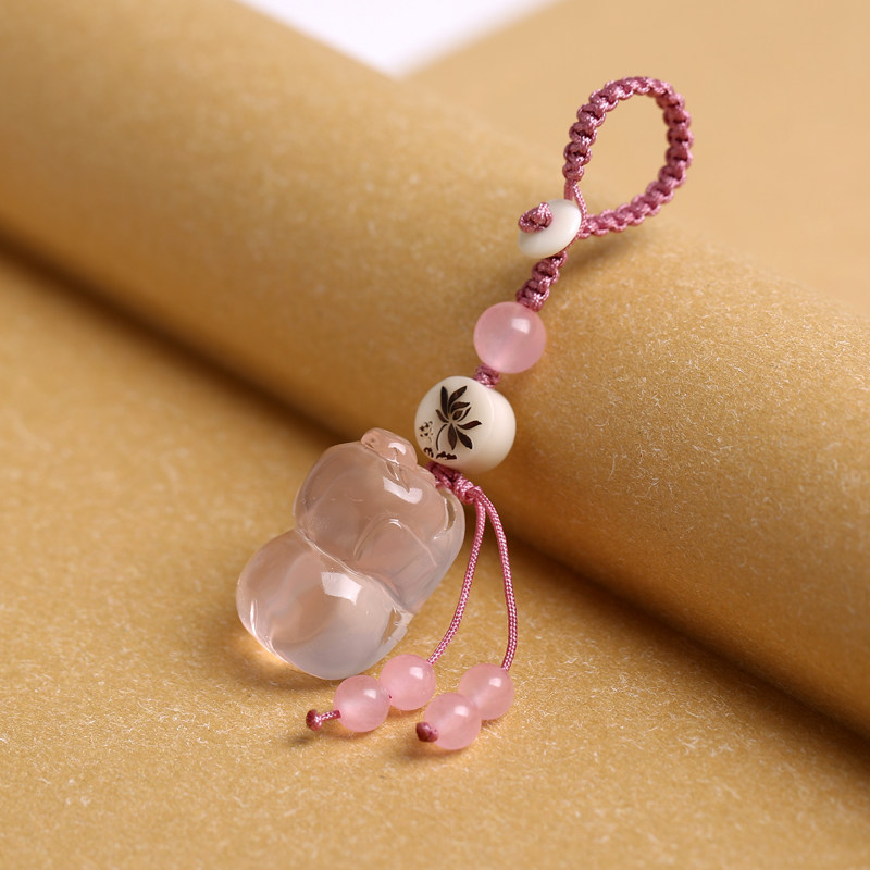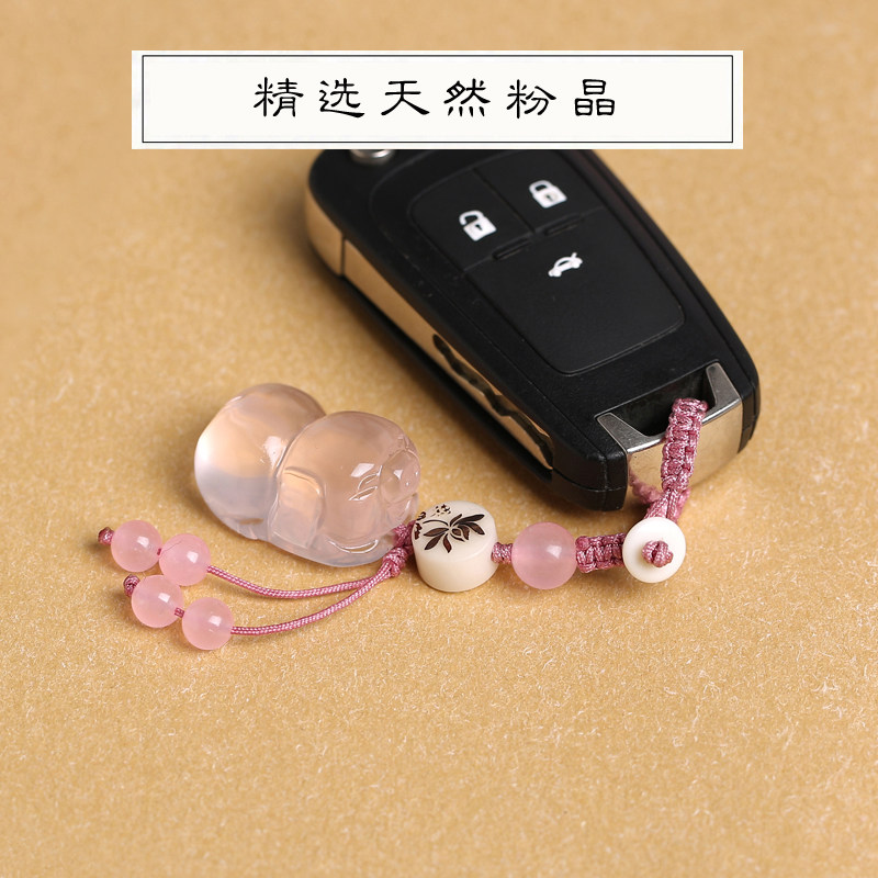 Natural pink crystal cute pig car key chain pendant female mobile phone lanyard bag cute pendant - Taobao