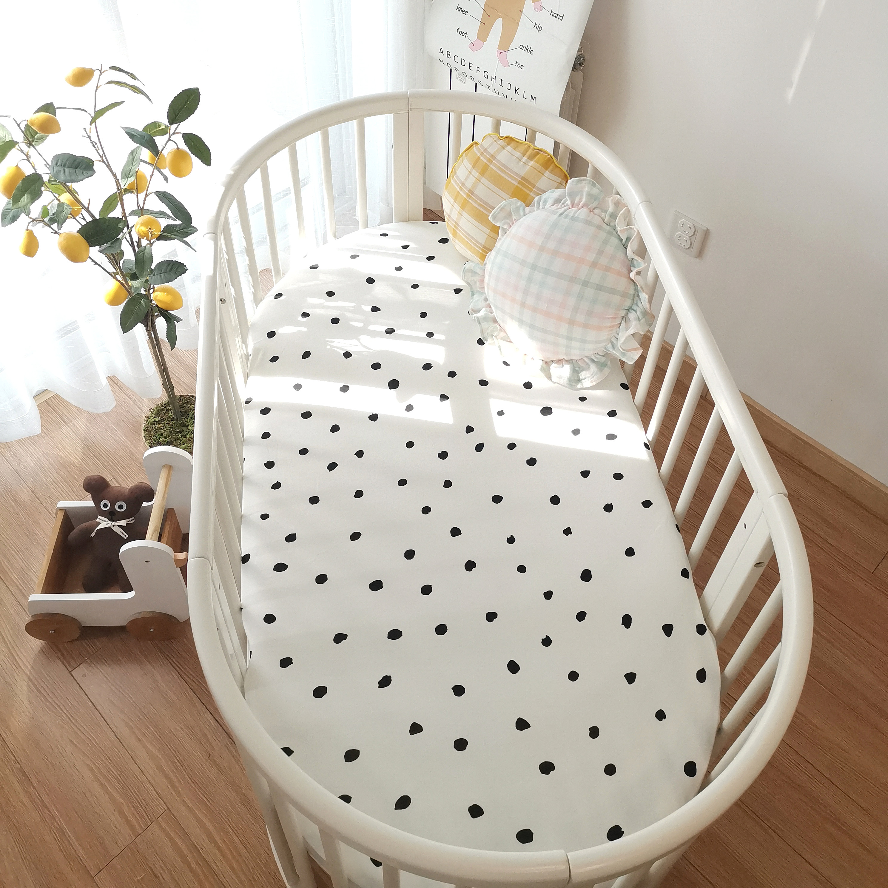 ins crib bed hat soft knit cotton linen cover round bed Oval Bed Hood Thickened Mattress Flex