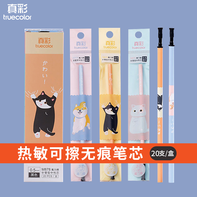 True colour erasable refill Primary school pupil writing full needle tube head 0 5mm crystal blue magic rubbless pen refill m878 Thermal erasable water pen refill black wipe without mark refill 20 Wholesale 998