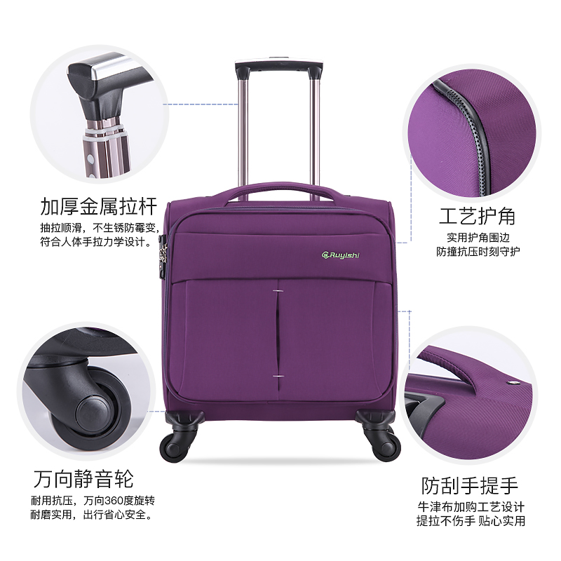 Ruyi Oxford Bra rod box universal wheel 18 inch boarding case men's luggage women's canvas boarding case suitcase