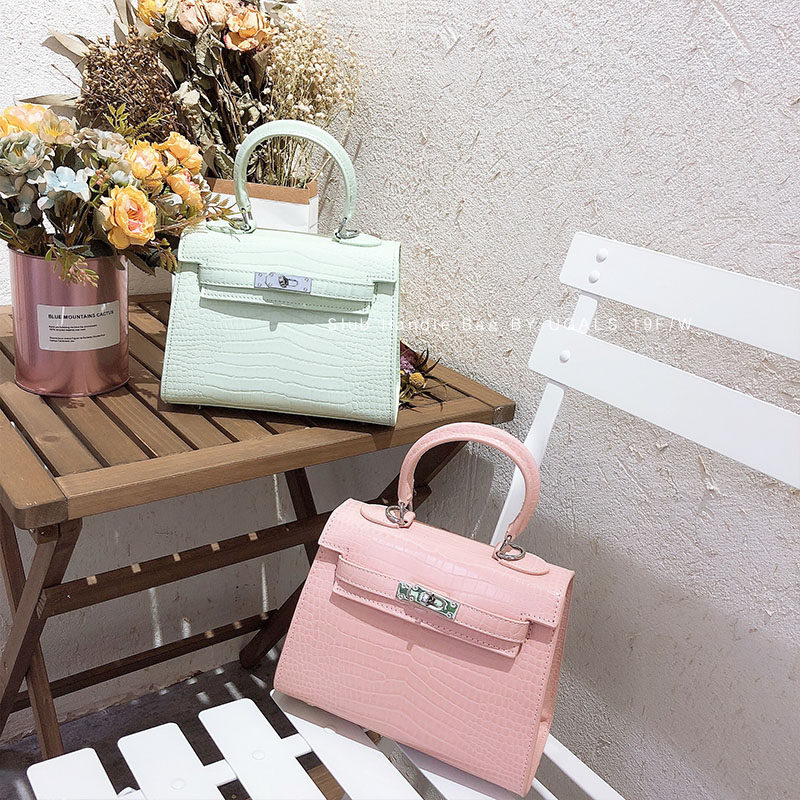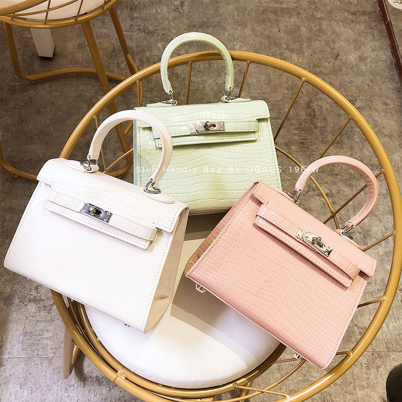 UGALS Bright Face Crocodile Tattoo White Platinum Kylie Bag Mini Mini Single Shoulder Carry-on Satchel Bag