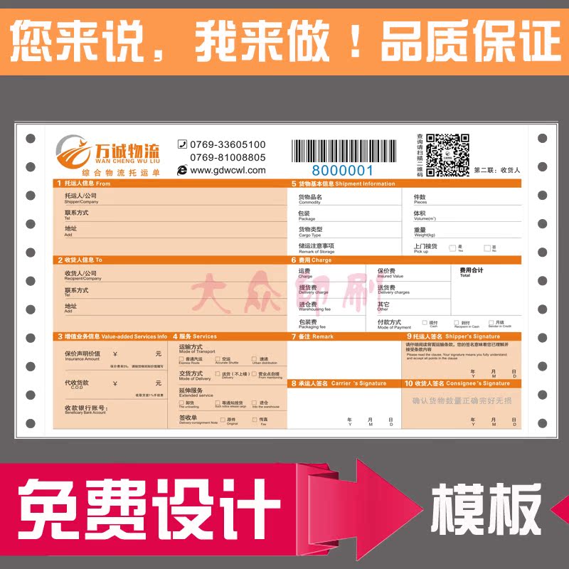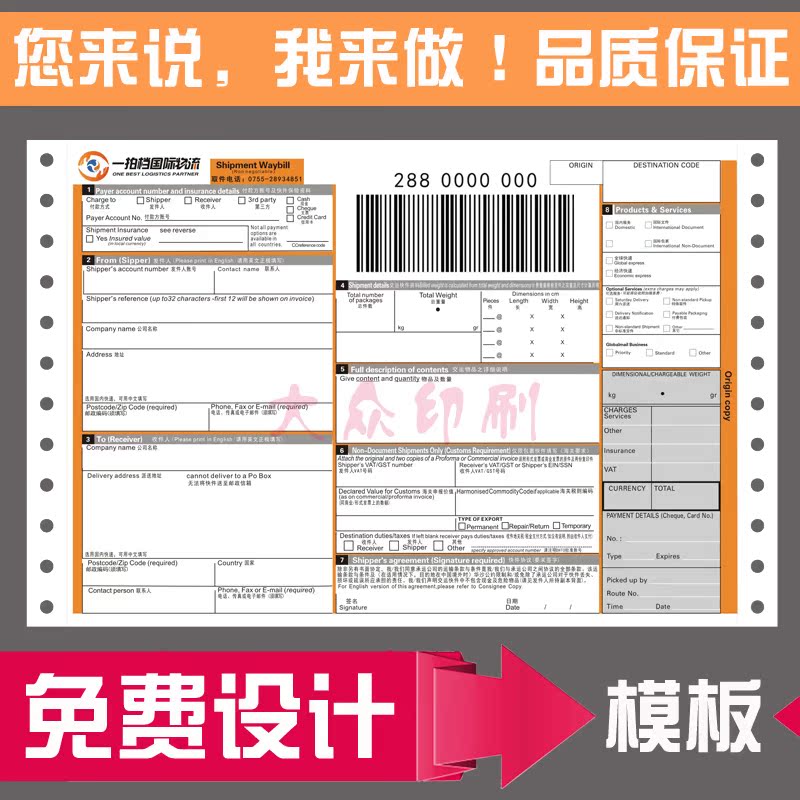 Express Order printed and made logistics documents printed goods transport agreement documents printing press beat delivery bill of four couplets