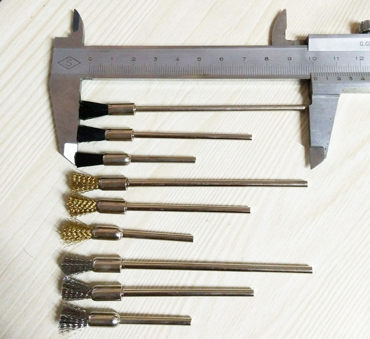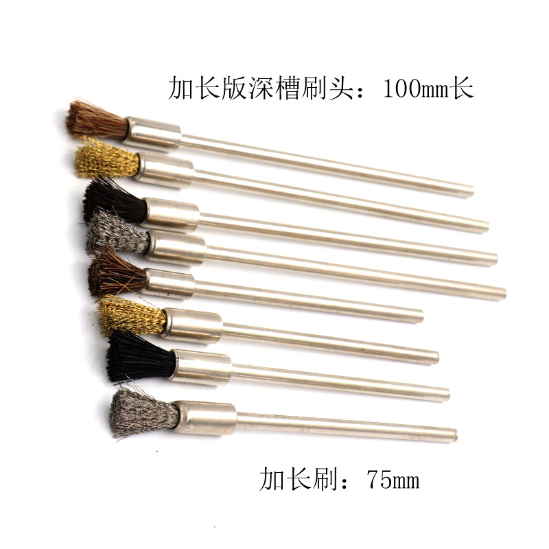 Lengthened rod stainless steel wire brush Mini brush brass wire pen brush horsehair electric grinding hanging mill rust removal polished lengthened brush-Taobao