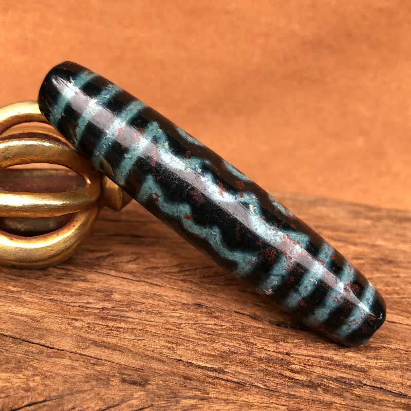 Zhangxiong Dzi Tibetan Five-Eyed Dzi Natural Cinnabar Genuine Rough Shale Old Mine Old Material Heavenly Descending Stone Dzi