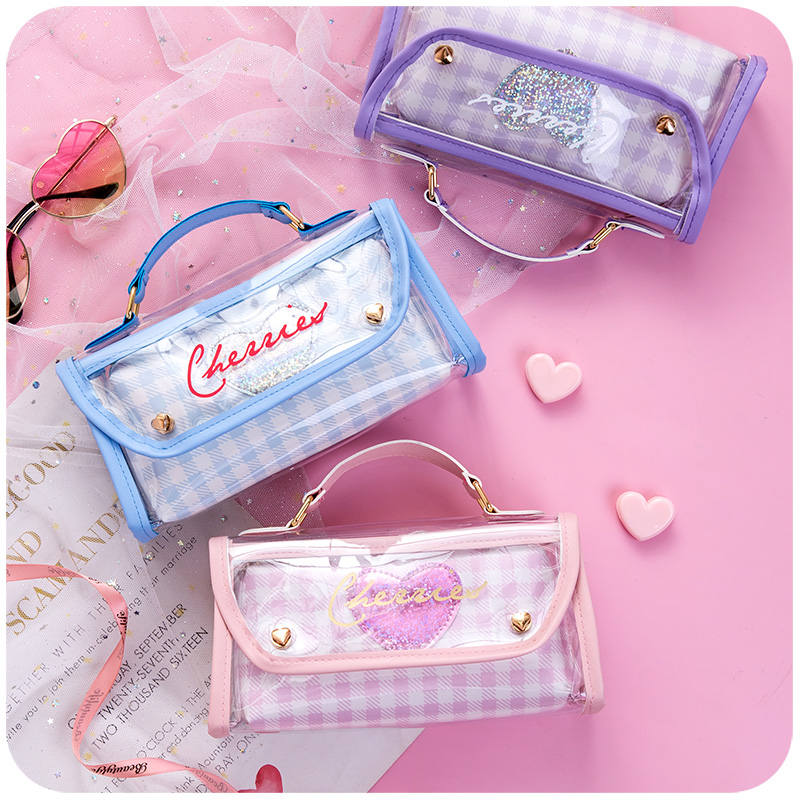 Girl heart pencil bag Japanese large capacity transparent primary school student net red cute simple ins tide stationery pencil box
