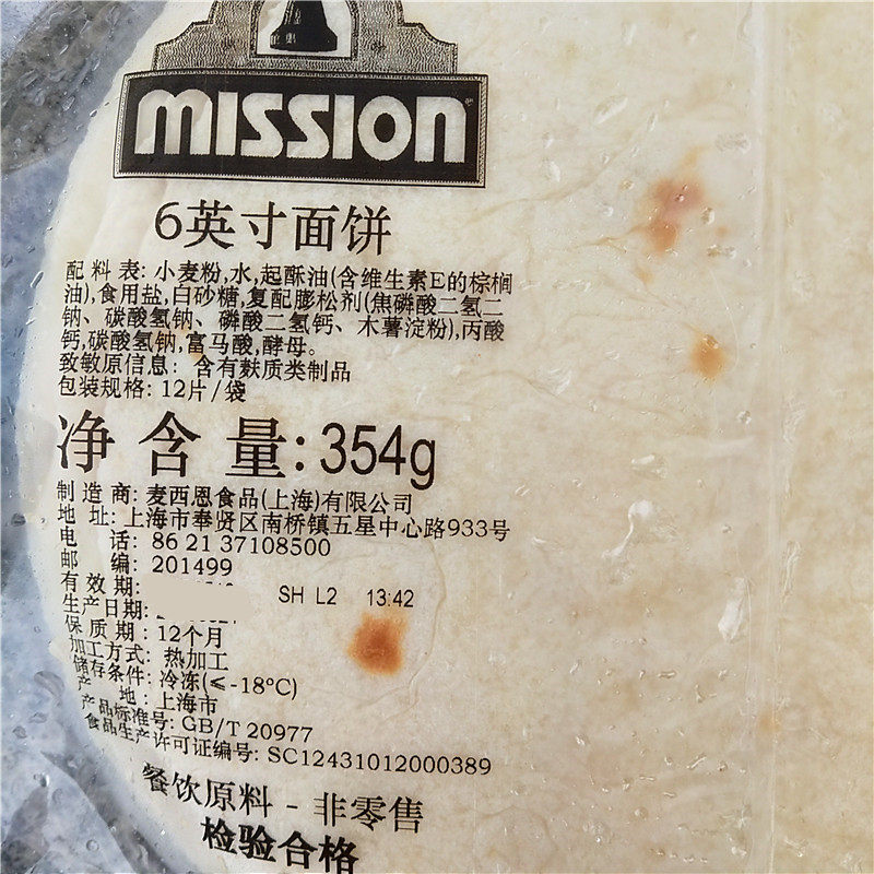 354g Bagged 6-inch Old Beijing Chicken Burrito Mexican Pancake Skin MISSION TORTILLAS