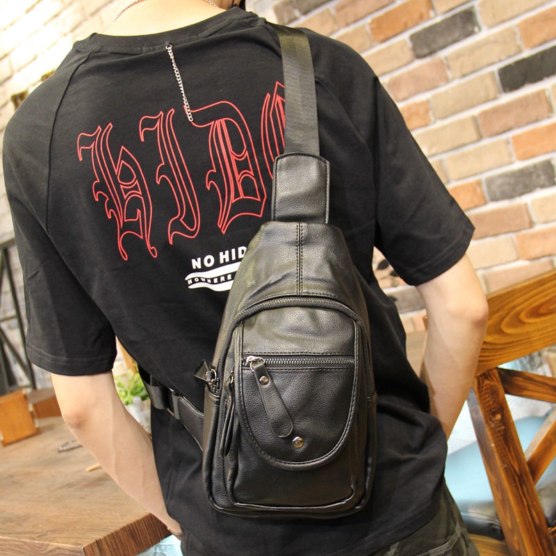 LORFVD Lofty Casual Chest Korean Leather Small Bag Men's Messenger Bag Shoulder Bag Sports Backpack Tide