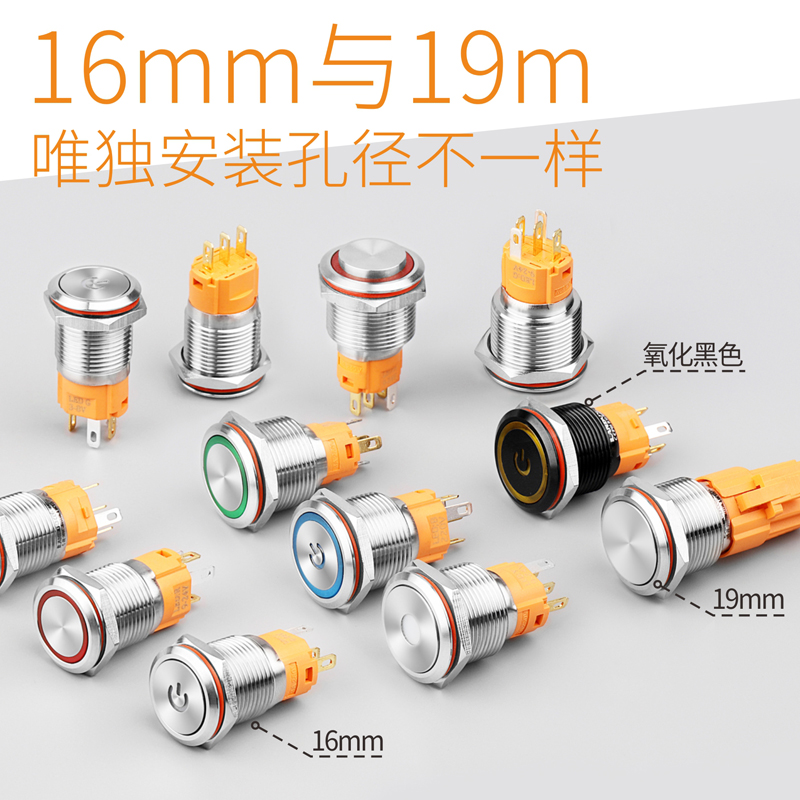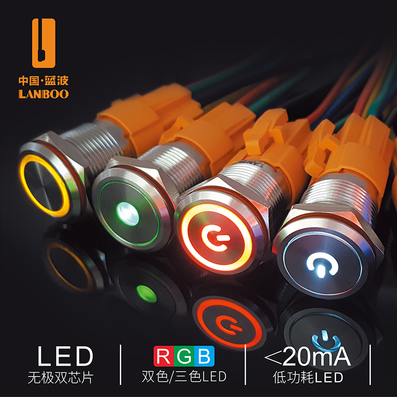 16mm light ring power symbol metal button switch self-locking reset car modification LANBOO direct sales