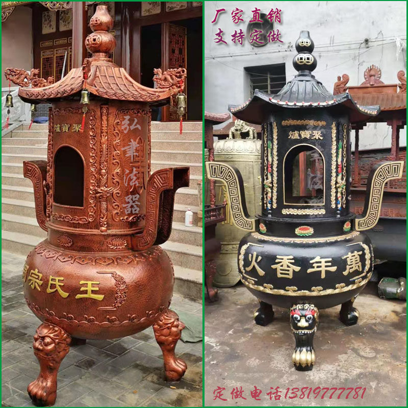 Temple Burn Paper Stove Poly-Treasure Furnace Road View Ancestral Hall Graveyard Cast-iron Pure Copper Outdoor Chemical Money Furnace Ancestral Hall Raw Iron Incineration Furnace