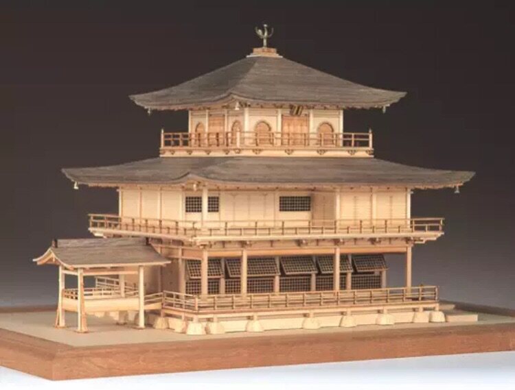 Japan hand-assembled WoodyJOE1 75 Luyuan Temple Jinkaku Temple Mortise And White Wood Structural Model Gift Pendulum