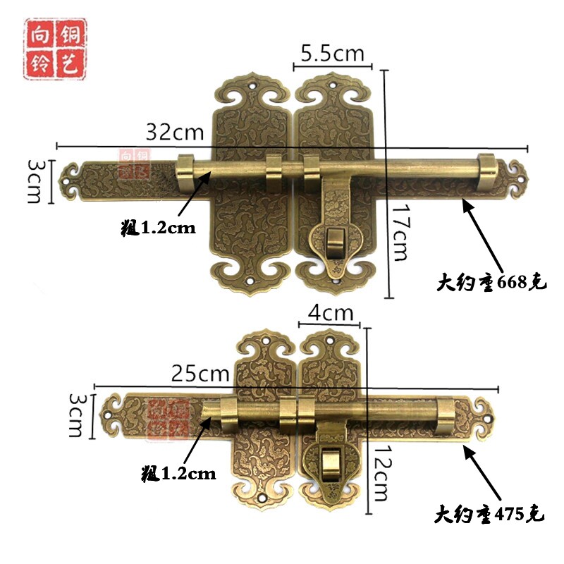 Chinese pure copper thickened latch Old-fashioned wooden door lock Garden ancient courtyard door latch Antique door buckle Copper door bolt