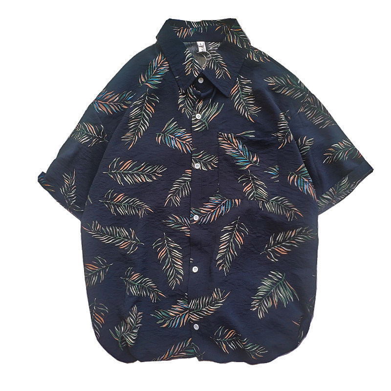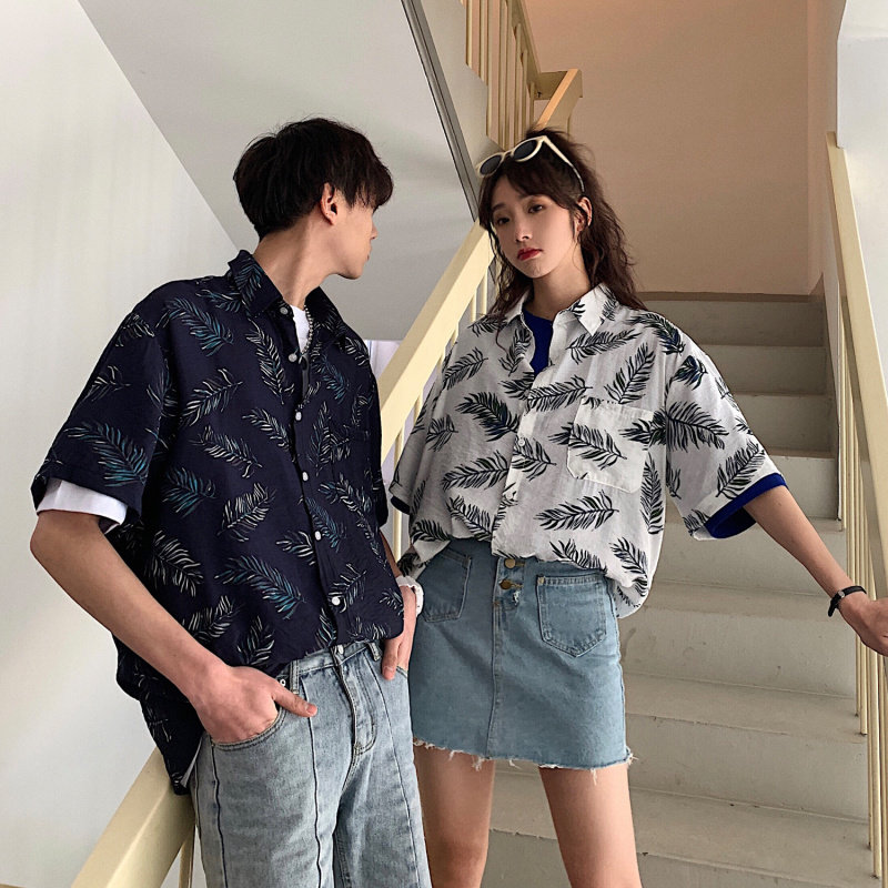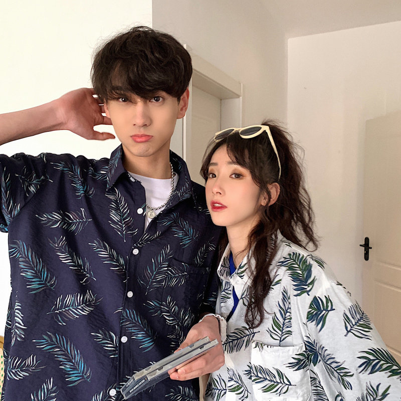 ins Super fire men's short sleeve flower shirt Hong Kong style Japanese loose beach holiday couple Ice Silk shirt