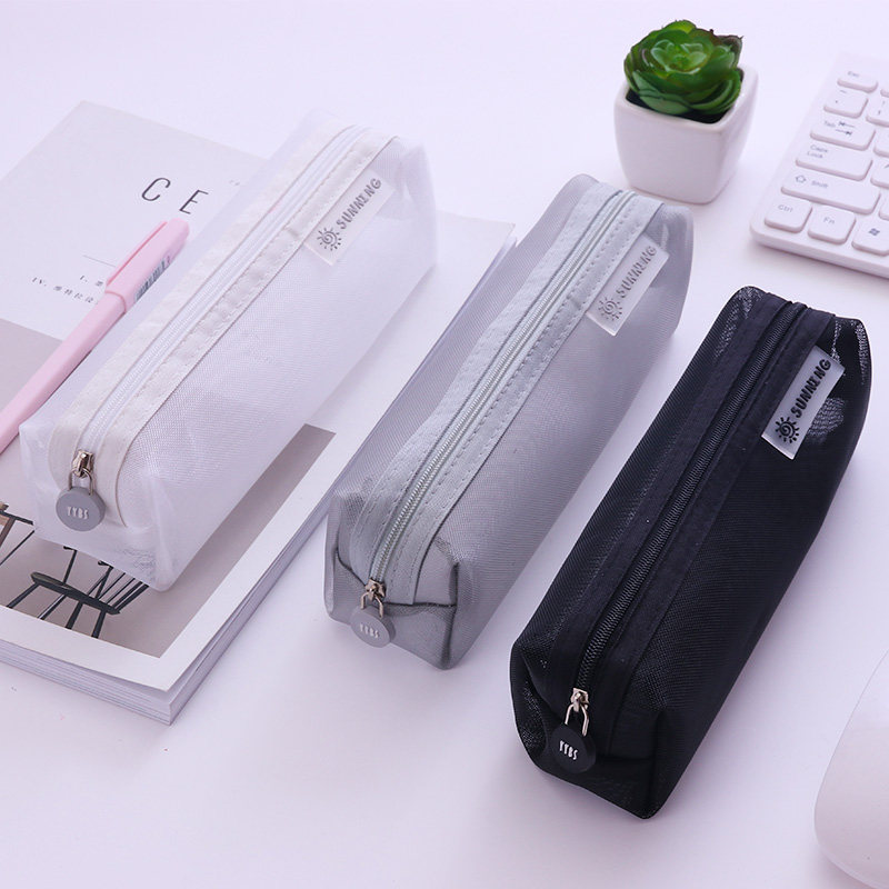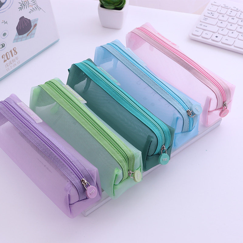 Transparent Mesh Yarn Pen Bag Korea Brief Girl girl Xiaoqing New cute pencil bag pencil case for male and female high school students Han edition junior high school students new large capacity creative Japanese size student pen bag